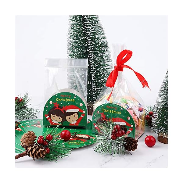 ➤ Use Step – Diese Weihnachtstaschen können Ihre praktischen Fähigkeiten ausüben. Wenn Sie die Ware erhalten, erhalten Sie 3 Produkte, transparente Tasche + Weihnachtsgeschenkkarte + Band. Sie müssen die Karte selbst in die Tasche falten, dann das Geschenk oder Essen, das Sie zubereitet haben, einlegen und schließlich ein Band durchschneiden, um Ihren Lieblingsknoten zu weben.