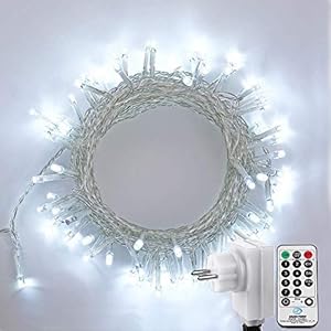 【8 BELEUCHTUNGSMODI】 3 * 3 m, 300 (12*25 LED) LED-Lichtketten mit Tasten am Adapter. Es gibt 8 Beleuchtungsmodi (Kombination, in Wave, Sequential, Slo Glo, Chasing / Flash, Slow Fade, Twinkle / Flash, Steady On). Verschiedene Lichteffekte werden über die Adaptertaste gesteuert.