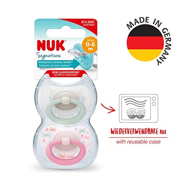 NUK Signature Schnuller | BPA-freier Schnuller aus Silikon | 0-6 Monate | blaugrüne Sterne | 2 Stück