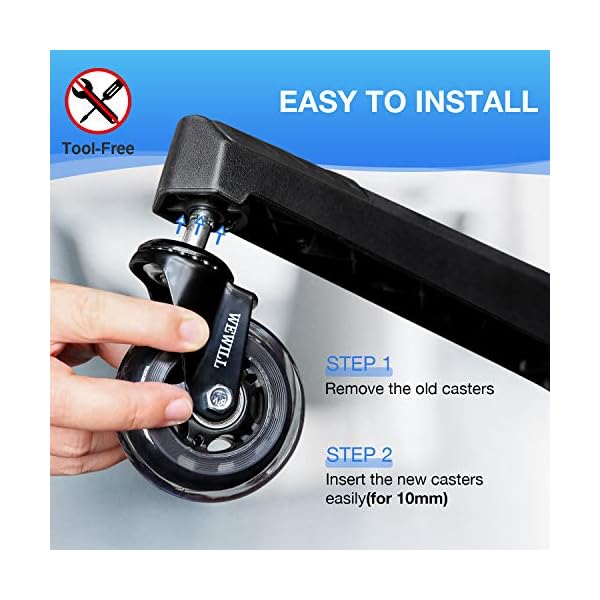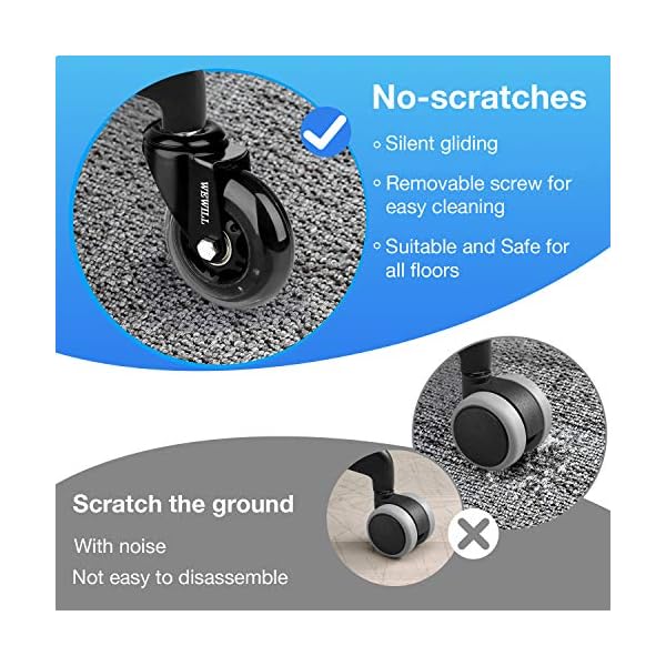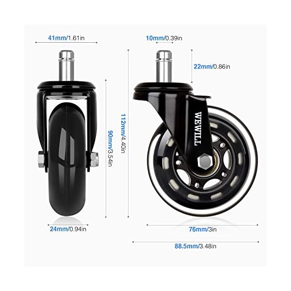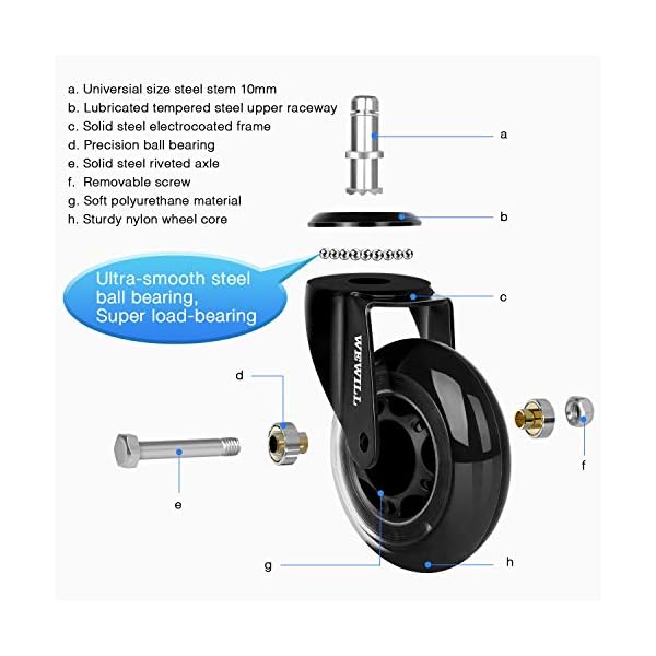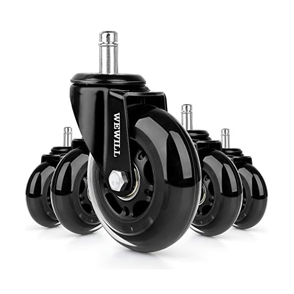 WEWILL Bürostuhl Rollen Schreibtischstuhl Gummirollen Hartbodenrollen Bürostuhl Stuhlrollen, Sehr leise Bürostuhlrollen…